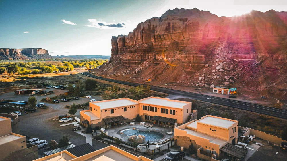 Peggy Black is a local who weaves incredible baskets which are available at this trading post. For a touch of indulgence, check into the Bluff Dwellings Resort & Spa, (image below) beautifully carved into the red rock and the perfect spot to watch the desert turn gold at sunset. End your day at Twin Rocks Café, where Navajo tacos and starlit skies serve up the true flavor of the Utah frontier.