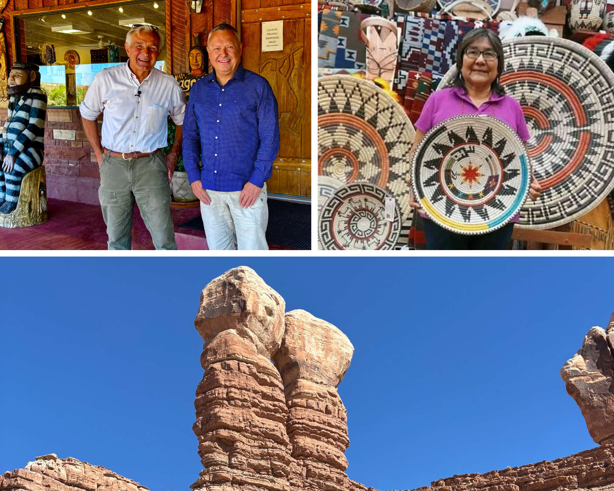 Don’t miss a visit to Edge of the Cedars State Park Museum in nearby Blanding — one of the finest Native American archaeological collections in the Southwest. Stop at a trading post or gallery, like the Twin Rocks Trading Post, to meet Navajo and Ute artisans and pick up hand-crafted jewelry or pottery. Owner Steve (pictured below) steve@twinrocks.com is a terrific host who gave us some great tips and places to see.